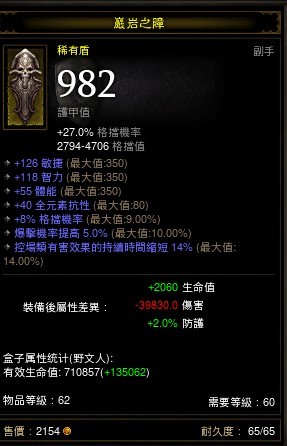 我玩尼姑的,用盾都是敏体+单抗全抗暴击MF,现在用的盾254敏208体,7.5爆,17MF,单抗40!600W而已,亚服的!