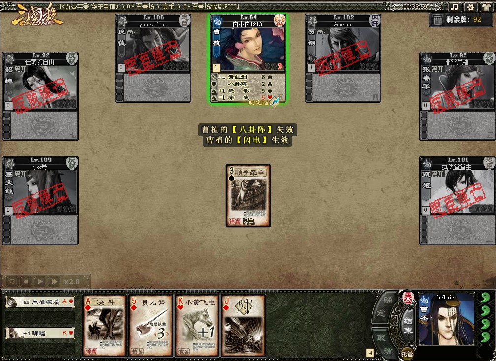 曹植,速度翻面,然后喝酒,火杀,收工。