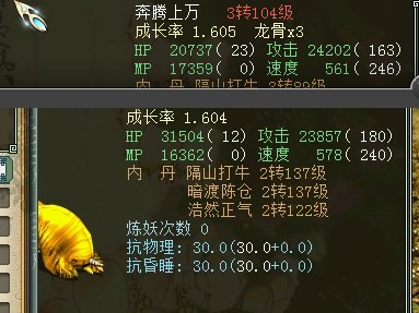 下召唤兽加血技能你算了没有?上黄金石吃了三个骨头的三转黄金成长,下黄金是吃了丹没吃龙骨的三转成长率。