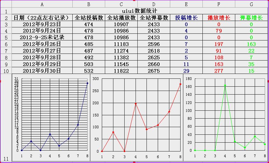 全站投稿数 全站播放数 全站弹幕数 投稿增长 播放增长 弹幕增长