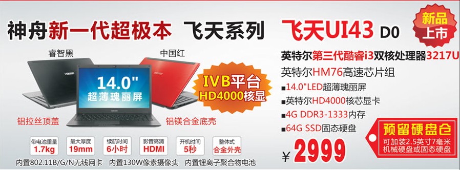 神舟飞天U45D3,U47D1都是三代CPU