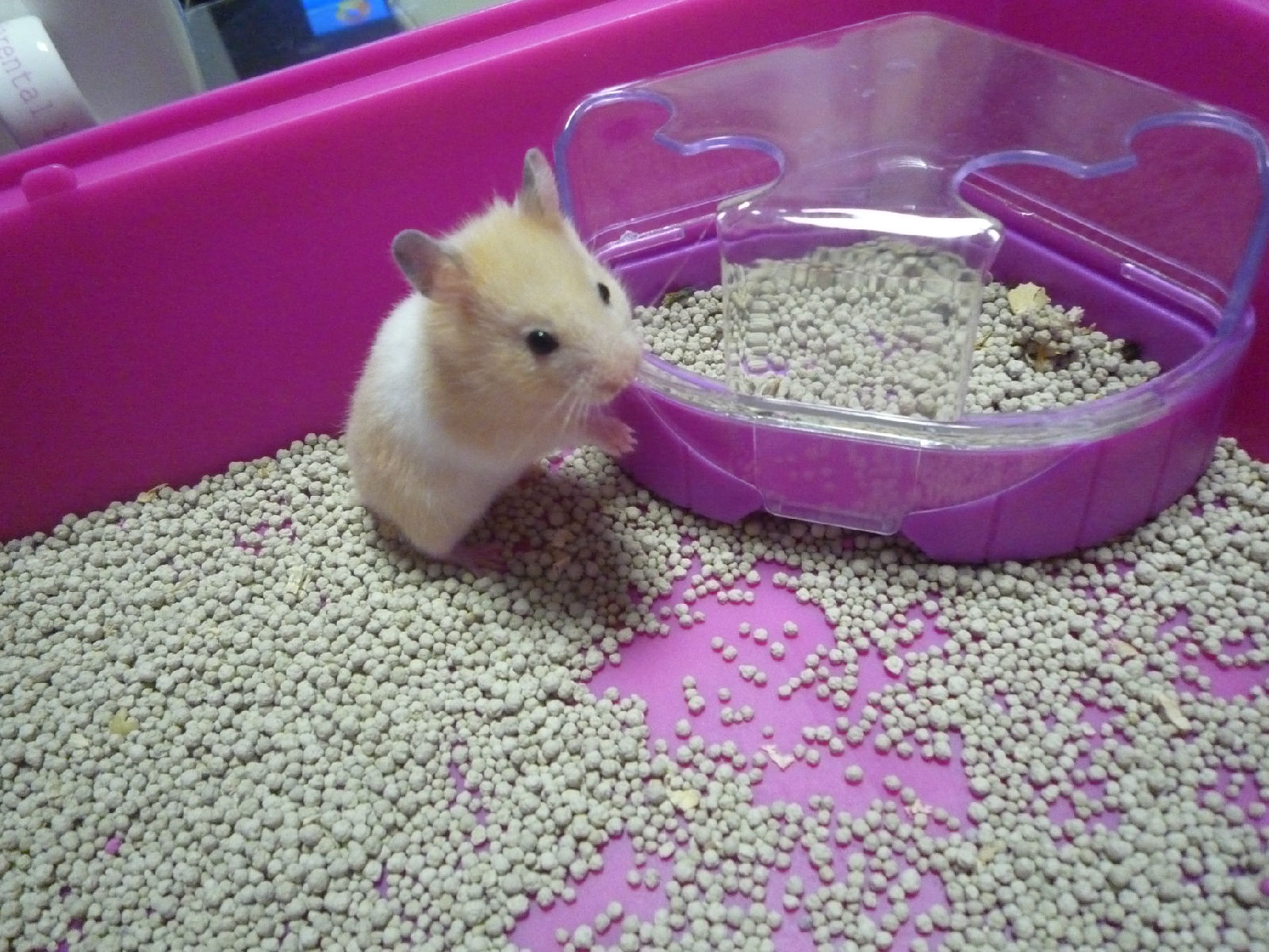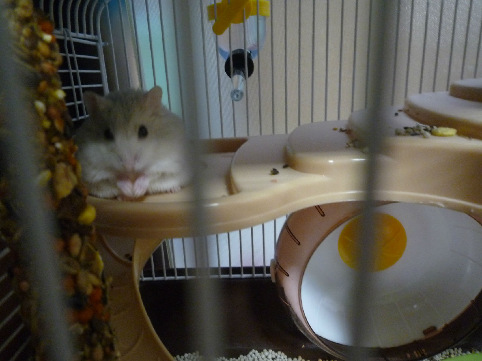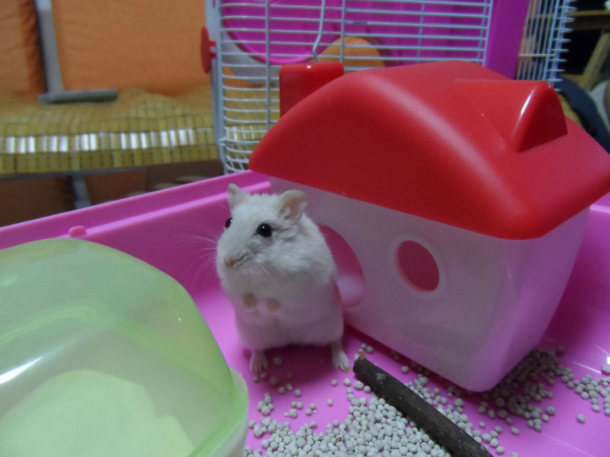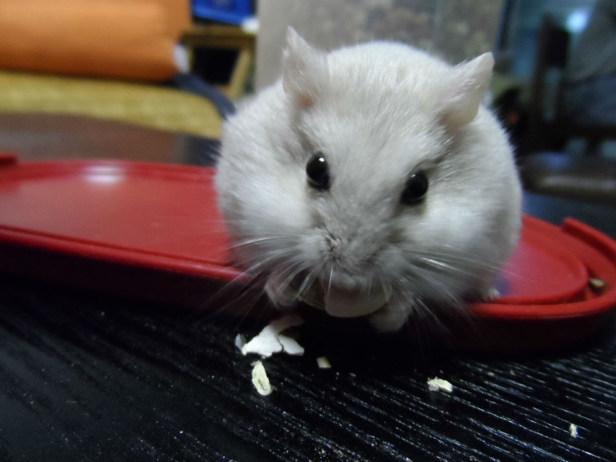 臭臭喜欢躲在窝里吃东西,在窝外面都是先藏在颊囊里。吃的照片不多。