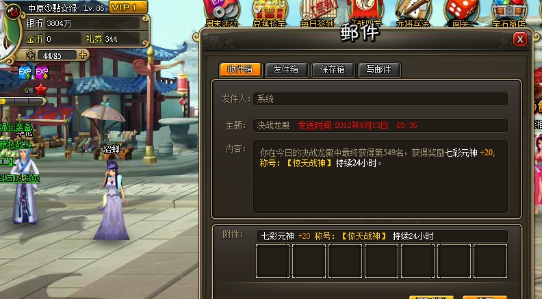 恭喜,我还没上游戏看呢,估计也有了