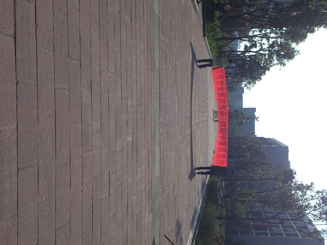 我们学校昨天被老师强行把横幅给扯了,哎····