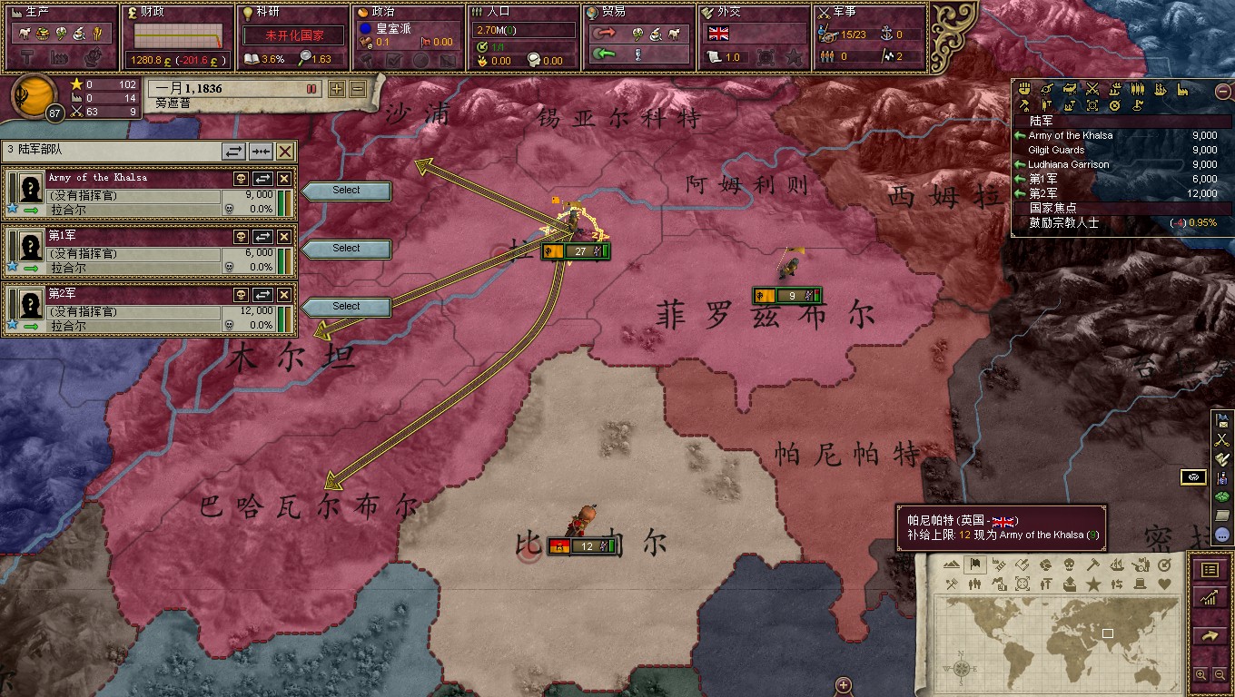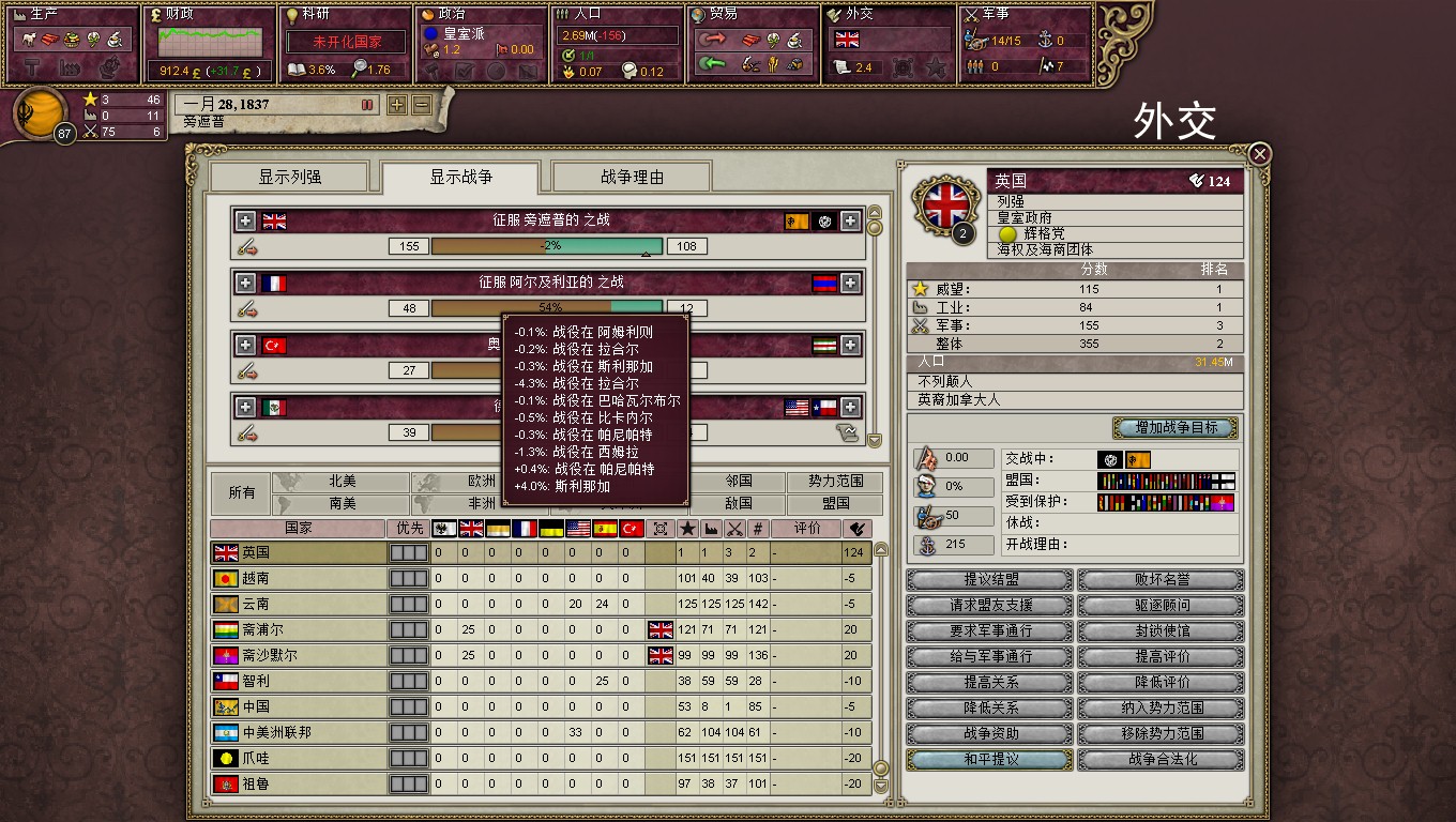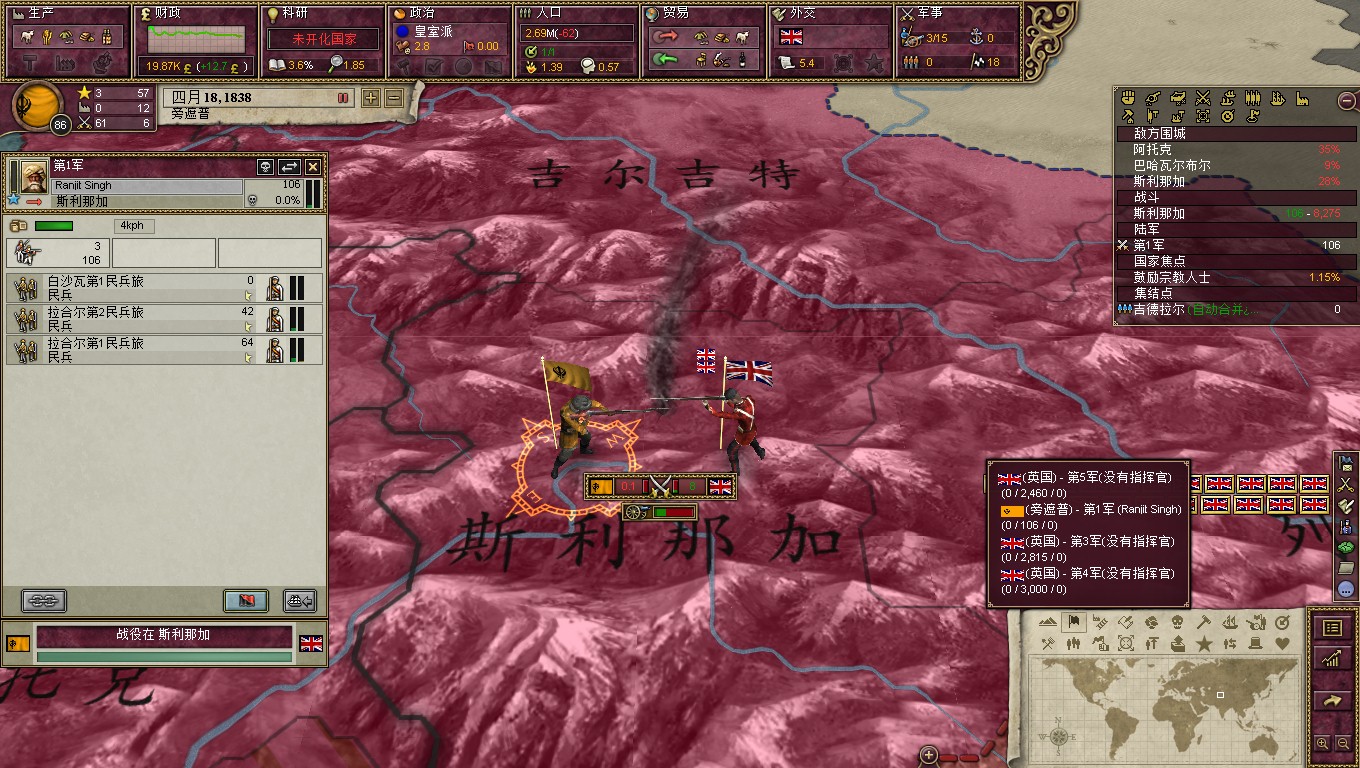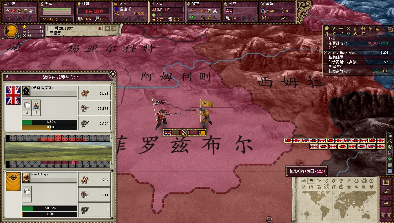上来把本“狮”安插到最前线,不过是为了跑啊!英国佬马上就要来了,将领带头撤跑的快!总体战略很简单,就是哪山地等地形耗光对面,然而诸神ai的设定貌似是根据旅数的多少来选择进攻,比如我这里有15个旅45000人,电脑有30个旅但是因为地形的损耗只剩下了30000人,但这时候他还会一股脑的冲过来。还有就是ai攻城的时候,呃,是不会管友军的死活的,兵法有云,攻城为下,攻心为上啊ai兄。这时候人类就能光荣的战胜了ai。哦也!