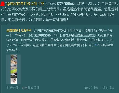 有没有今晚想去看韩庚演唱会的?第二排中间的票,免费转!沈阳铁西体育馆! 21分钟前来自Android客户端 位置不错 可惜我不在沈阳啊