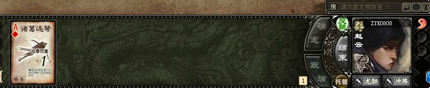 今天蜀超二武器一藤甲一无懈,三轮摸了一张杀,武器拆了左右加一一把杀,都哭了