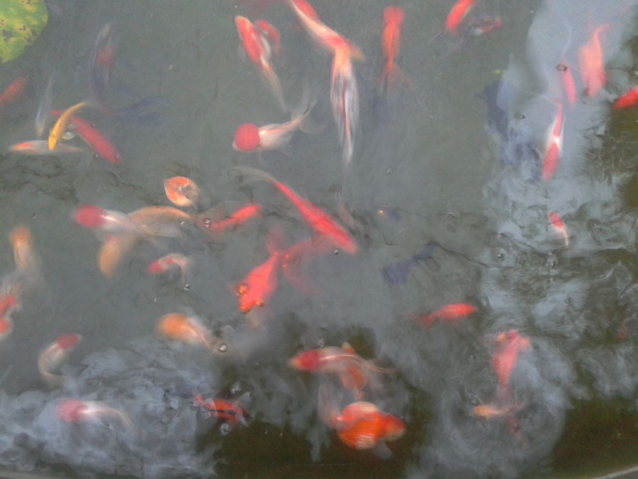 里面有金鱼,珍珠,水泡,草金,锦鲤,还有清道夫,泥鳅和螺丝 哈哈哈