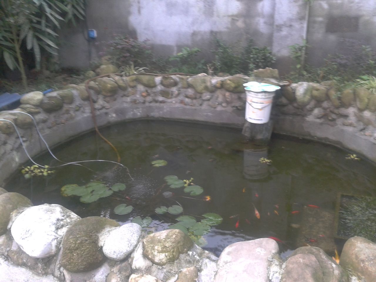水位在加高50公分,效果会更漂亮,其实这水池只适合养草金和锦鲤。