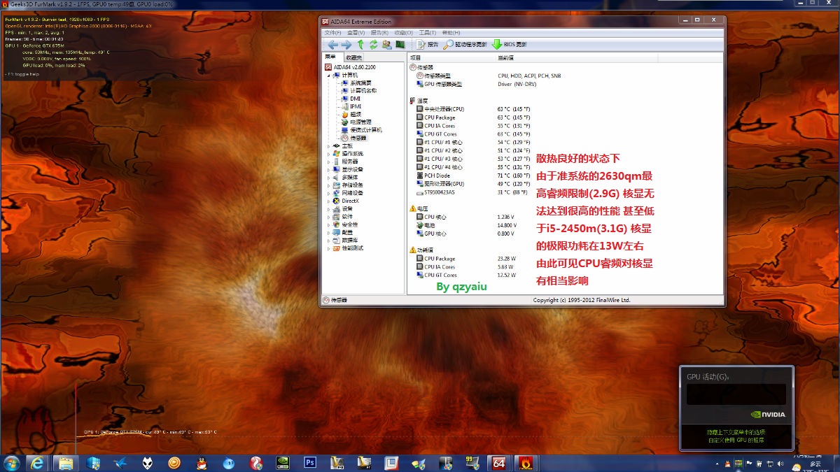 最近购入i7 2840qm 为了验证自己对小Y主板供电能力的猜测 本人对小Y各种运行状态下CPU功耗状态进行了分析 在此过程中 得到了吧主qzyaiu与会员_KSCN的热情帮助 首先在此表示感谢废话不多说 进入正题(注:为了保证结果可靠性 在进行核显测试的时候 在BIOS中禁用了独显 故检测软件无法看到独显)