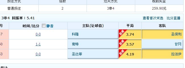 错了 是和上面那单3串1 早场