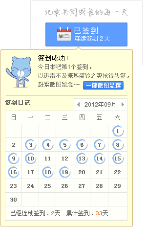 连续在本吧签到2天,晒下签到排名照,看看我神马水平