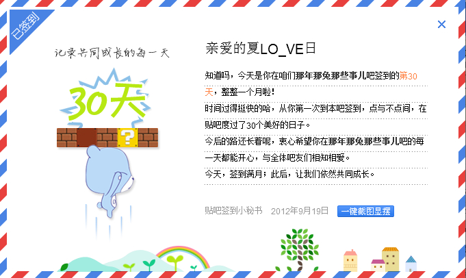 在本吧已累计签到30天了,截图留念一下下