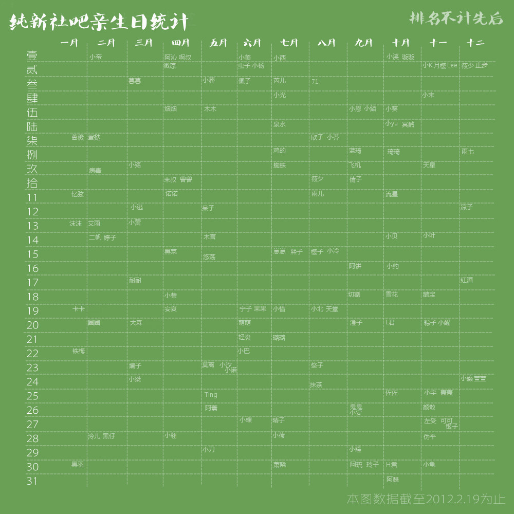 但是有的日子算公历也有三个人于是第三个就写在一二排的中间……