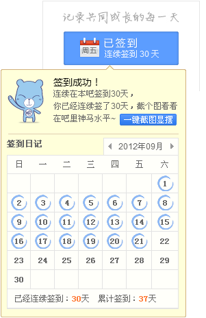 连续在本吧签到30天,晒下签到排名照,得瑟一下。呵呵!!!