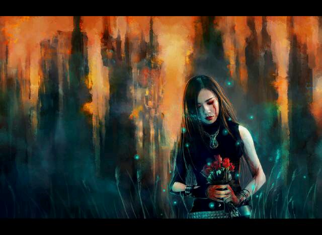 欧美油画暗黑系画风,以灰色背景渲染主人公的犹豫和悲伤,血泪和赤红玫瑰反应出主人公悲惨的命运。且danee在mv中扮演的是一个盲人女孩,她只能用心灵去感受这个世界,周围的萤火虫就是她对这个世界的一点点希望。
