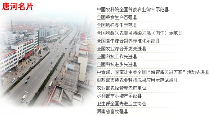 唐河,中州大地上一块瑰宝,古为申、谢封地,自秦朝始,历为州、县治所。现总面积2512平方公里,耕地199.4万亩。辖13镇7乡,128万人。悠悠历 史积淀了丰厚的文 化底蕴,生生不息创造了辉煌的物质文明。