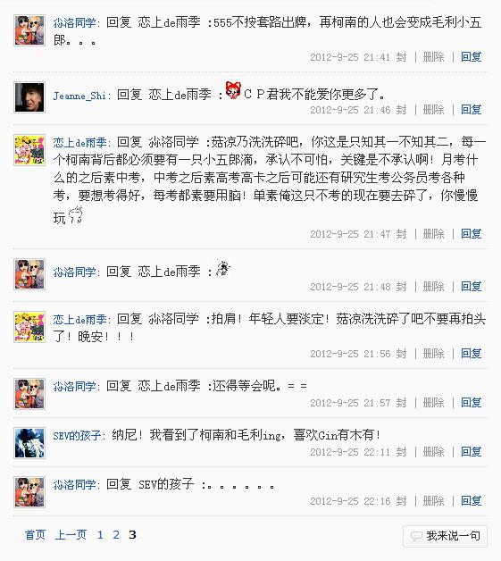 0.0回复下夏天亲,表示我喜欢官配,Gin和雪莉也不错,青菜萝卜,各有所爱,哈哈。= =原贴删了,所以刚刚才看到的回复只能在这贴回了,别介意