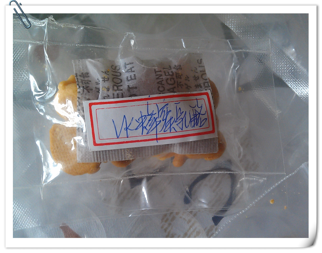回复 Gil仔有D怪 :哈哈,我首先闻了一下,感觉有股奶气,然后尝了尝,味道挺好的,然后吃了一个,嘿嘿,给了我的奶牛嘟嘟一个,吃的挺香的。