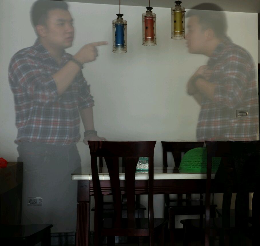 用TV档,快门时间我调到了20秒,快门开始后,先摆出第一个造型,心里莫数十秒保持不动,再立马换另一个造型,保持至听到快门声响。要用脚架,没有脚架找个地方固定相机也行