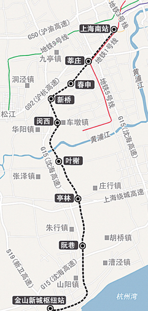 上海轨道交通22号线是在原有金山支线的基础上进行改建而成,由上海南站站至金山卫站(远期延伸至平湖,延伸段预计2015年前通车),工程以目前既有的金山铁路支线为基础并延长至上海徐汇区。新线起自上海南站,途经上海市徐汇区、闵行区、松江区和金山区4区,到达新建的金山卫站,全长56.4公里。全线按国铁〡级铁路、双线电气化干线设计,设计时速最高160公里/小时,部分路段设计时速最高100公里/小时。2012年9月28号起带客试运营,正式开通运营日期预计为2013年初。