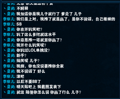排位遇到的坑爹二人组,我弟的EZ下路,盖伦不插眼无限E抢兵推线,ADC自己买眼还被无限推线。然后,主角上来了,之前选人的时候有了不详那货强选凤凰被我弟质疑就怀恨在心,说了盖伦,这狗就开始叫了,对骂过程就不详说了,惯例父子局。以下上图。