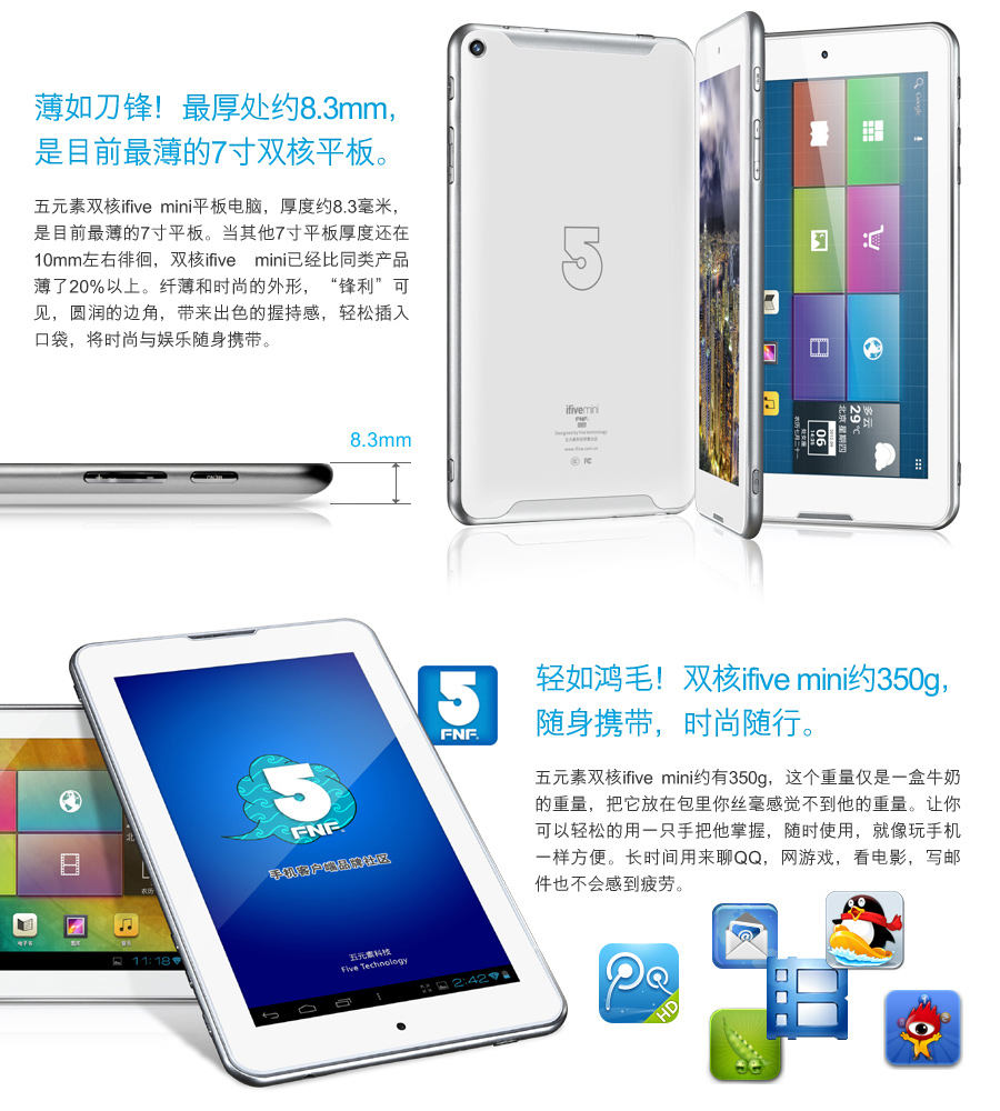 MINI双核大概配置:7寸双核RK3066方案 IPS屏亚马逊原装屏 蓝牙 前后双摄像头 4.1系统