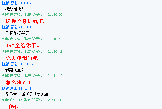 这B楼主就明显一死B骗子,说自己不会做淘宝连接,然后要人家买家直接先打钱,后面的话语一清二楚,大家都是看的清楚~~~你这种骗子真是不得好死,难怪人家说看你的网名就他蔴得到想抽你