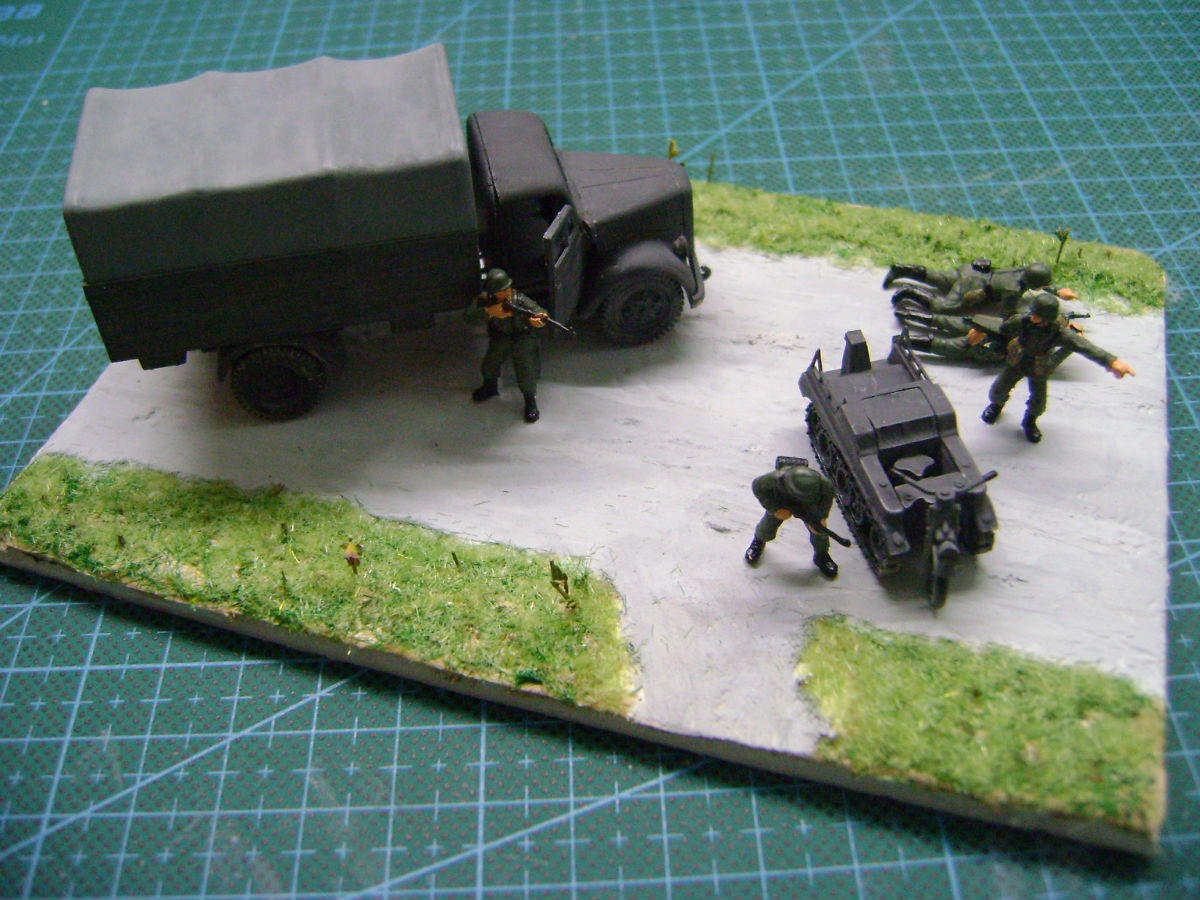 呵呵。。又和大家见面了,今天花了一天的时间做了个二战的情景。背景是德军的一只小队伍在进军中遭到伪装碉堡的攻击。。