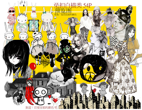 白描免扣人物fifi兔建筑等