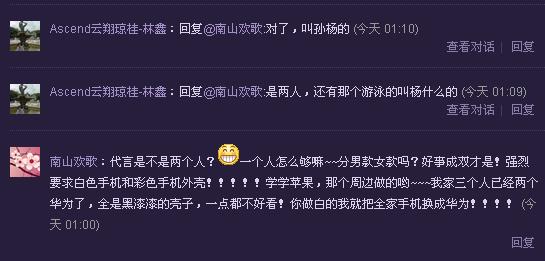 这是在华为终端CSO徐昕泉转发叶子微博评论下面看到的