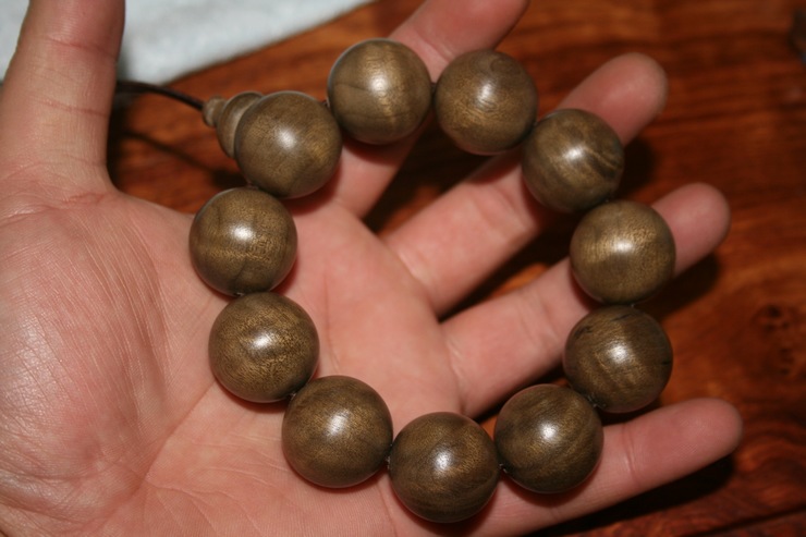 收了就玩着吧。。。不过说实话这类东西不建议玩手珠。材质不够硬,手摸多很容易脏,不见效果。金丝楠的东西最好收些摆件、小盒子、家具类的,那样才体现价值。另提醒下,所谓带香气的阴沉金丝楠别买,假的。。。