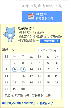 连续在本吧签到2天,晒下签到排名照,看看我神马水平