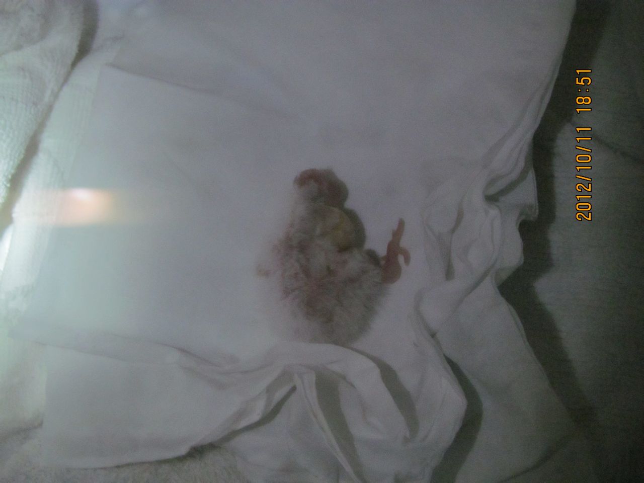 亲鸟生蛋4枚就出壳一只,其他3只没受精等原因报废,头窝亲鸟没经验也会喂出消化不良,雏鸟5天只好拿出雏鸟进保温箱,6点半拿出直到晚上11点多才消化完嗉囊食物,晚上做了次鸟爸手喂4次,早上9点还回巢箱让亲鸟继续。