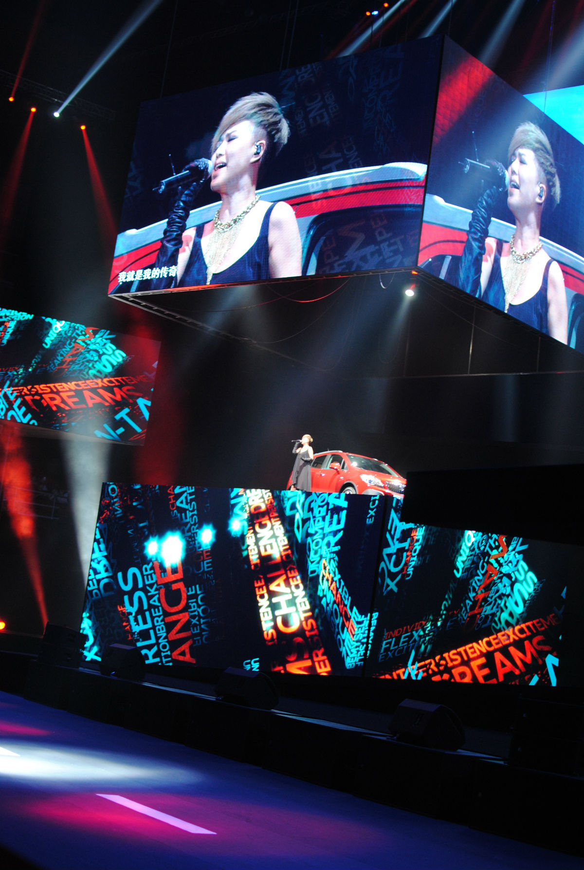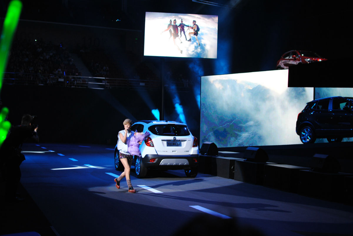 维维跟车子都是从升降台上来滴。出场很炫。