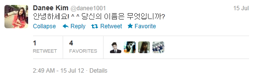 Danee的推特号:@danee1001(Danee Kim)