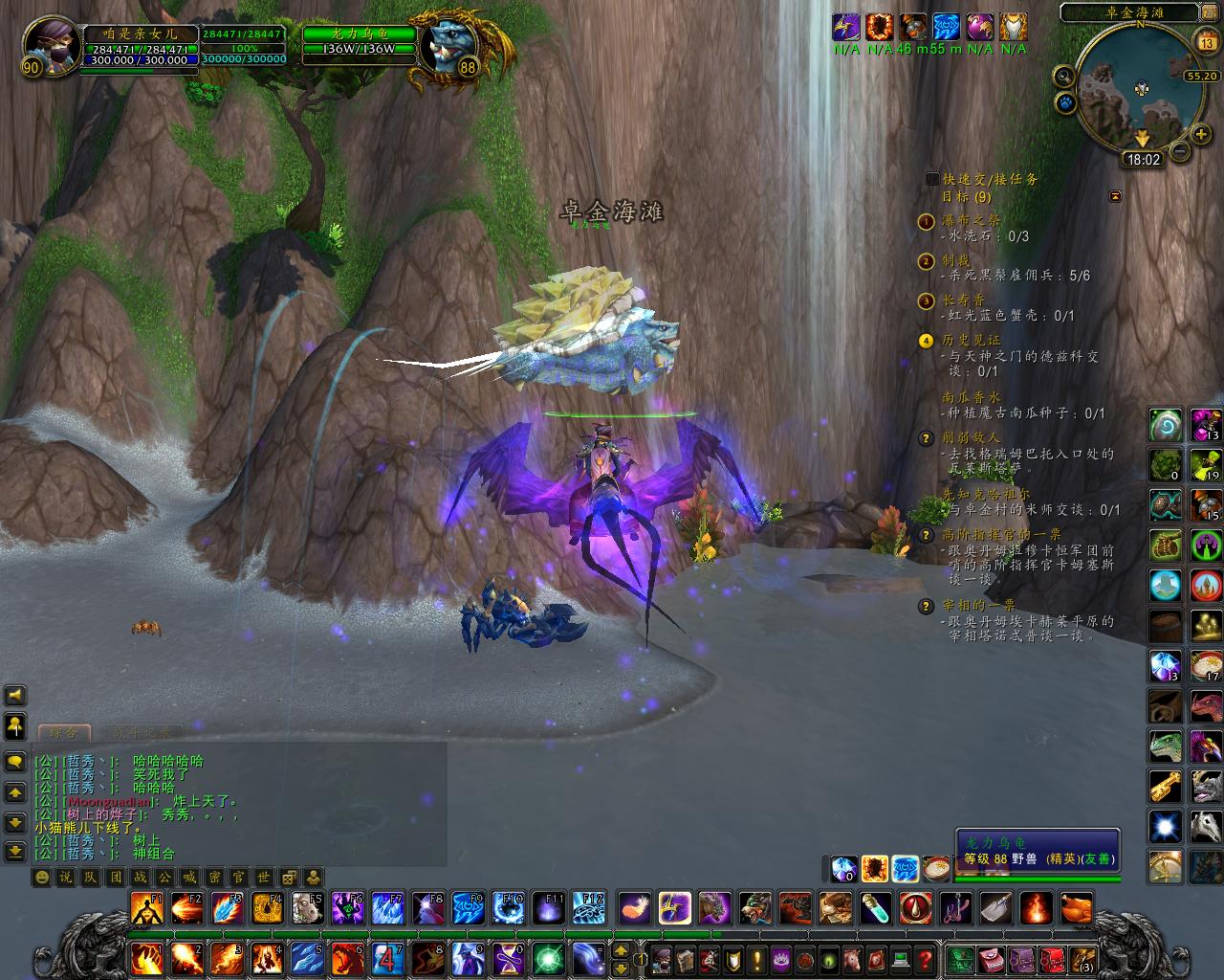 试过了,飞到它上空解除坐骑骑乘,然后没有情况地掉下来了,好在是法师,手忙脚乱总算在摔死前点开了缓落术。但是它还是带着诡异的微笑继续飞.......