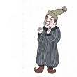 顺时针旋转90度,你就能看到,他是靠着坐的