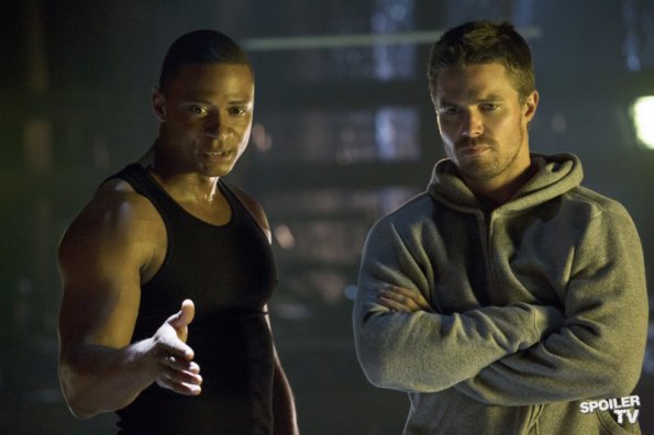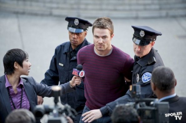 Season 1 Episode 5 : Damaged After Detective Lance arrests Oliver for murder, Oliver tells Moira the only lawyer he’ll allow to represent him is Laurel. Laurel takes the case which puts her at odds with her father. Oliver offers to take a polygraph in front Detective Lance but things get tense when Lance asks him if anyone else was on the island with him. Oliver flashes back to when he got his first scar, courtesy of Deathstroke. Lance警官以谋杀罪逮捕了Oliver,Oliver告诉Moira只希望Laurel来做他的律师。Laurel接手了这件案子,却将自己推到了与父亲作对的地步。Oliver提议在Lance警官面前进行测谎仪测试,当Lance警官问小岛上还有没有其他人的时候Oliver紧张了,Oliver闪回到Deathstroke给了他第一道疤的回忆中。