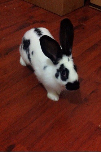 和俺家那二货也很像唉~就是斑纹是纯黑的 俺那丑兔子的毛有点发棕0 0 眼神也神似,他是不是也一惊一乍很胆小啊?