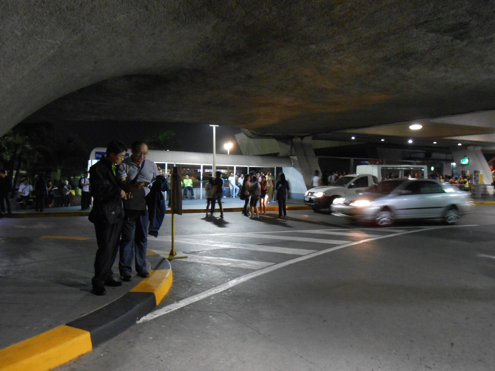 我和十几个女生从停车场绕到二层passenger entrance,又绕到一层旅客等候区外面,当时已经十点半了,栏杆附近已经排了大概二十多个人,等候区是半封闭的,只有接机的私家车可以开到里面,每辆车只能停留两分钟装行李接人,其他车辆和行人都不得入内。
