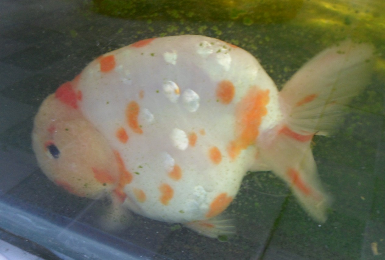 呵呵 老板说是福州永杰的 就看中他的肥壮和颜色 其实头瘤和尾巴还是有瑕疵的 准备明年做种鱼 但愿能活到明年春暖花开时