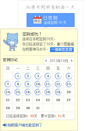 连续在本吧签到30天,晒下签到排名照,看看我神马水平