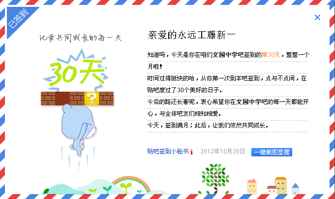 在本吧已累计签到30天了,截图留念一下下