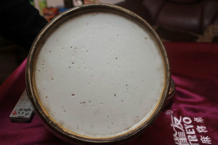 2.瓷罐内外都有一个“X”型的裂纹,但是摸起来并不会有裂纹的感觉,装水也不会漏水。