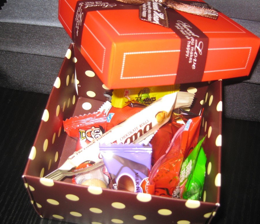 来吧,我这整整一盒!哈哈,来来来,吃喜糖
