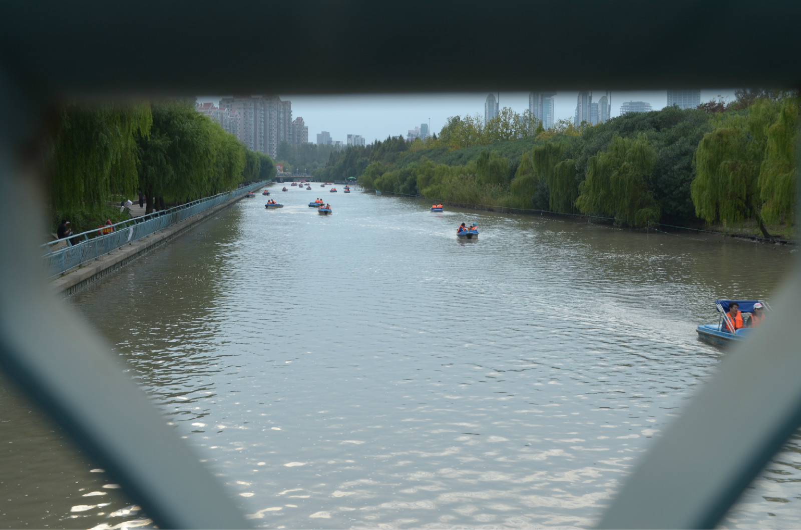 桥洞里的游船