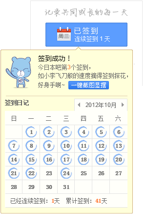 连续在本吧签到1天,晒下签到排名照,看看我神马水平