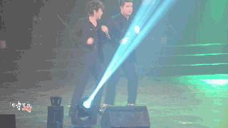 动图一枚!《miracle》时,站在主舞台不断扭屁屁的两个人!好吧~~他们都还很年轻,突发奇想也总是很童真~~~