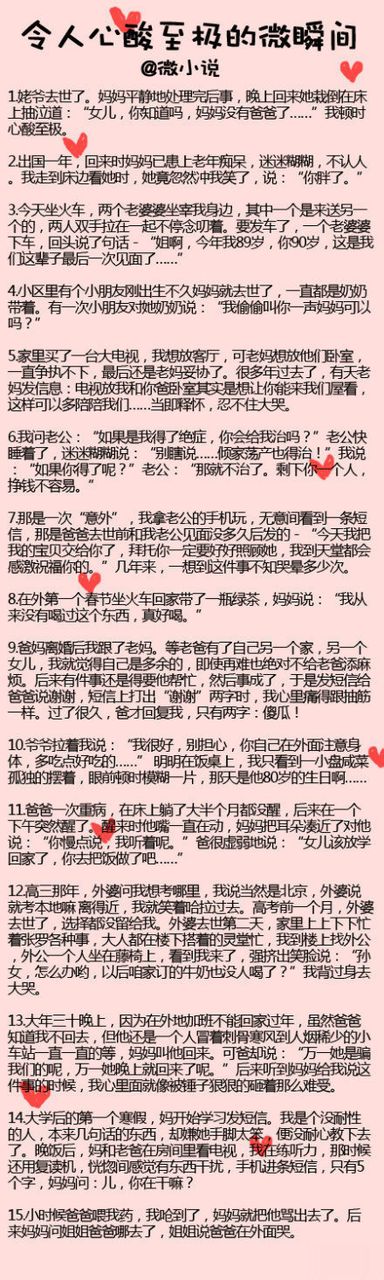看到第三条就忍不住了。下周回家看看爸妈,姥姥。珍惜人生每一次相见!